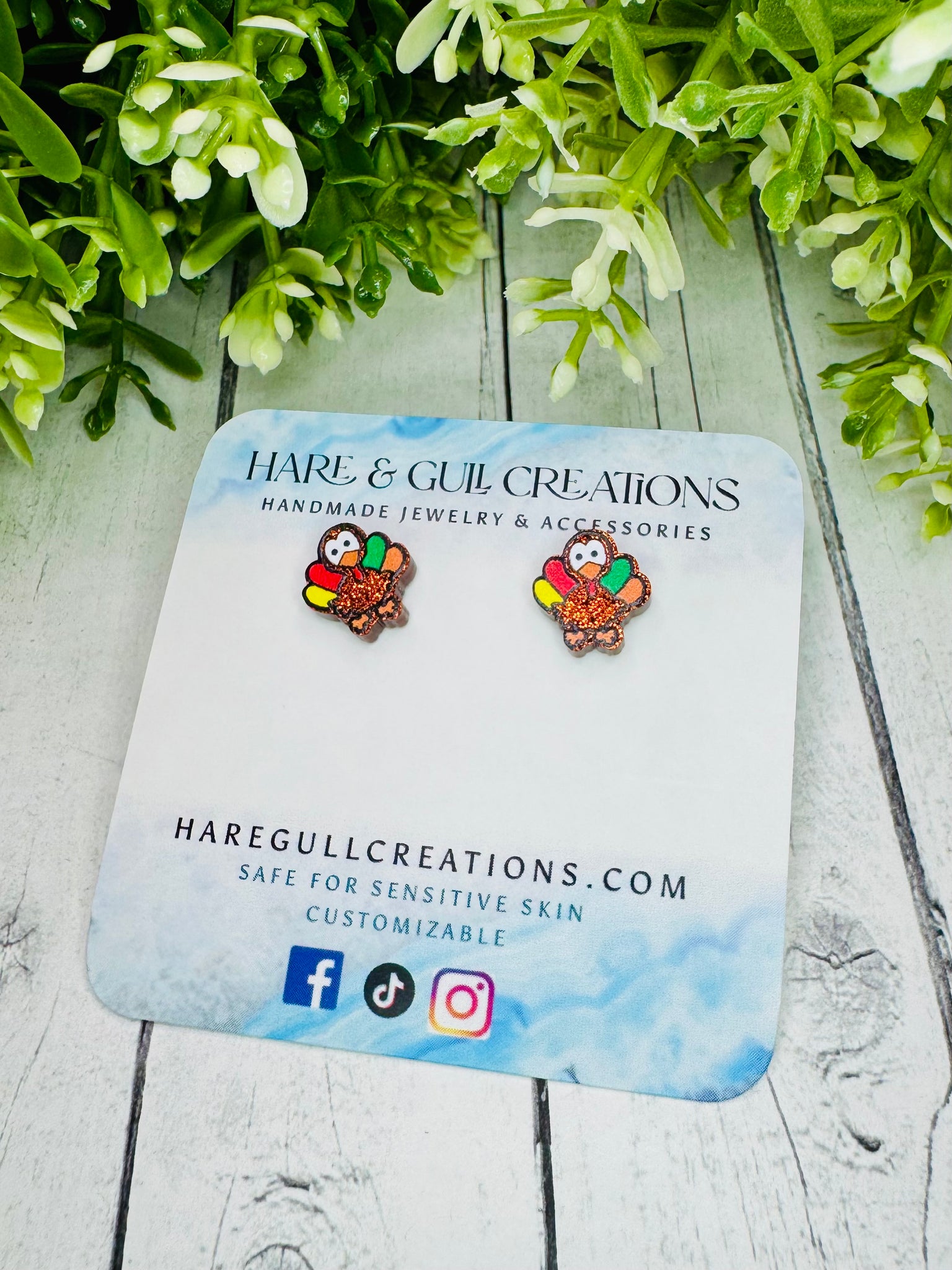 Grab these turkey studs set on stainless steel silver posts. Perfect for Thanksgiving! Approximately 12mm
