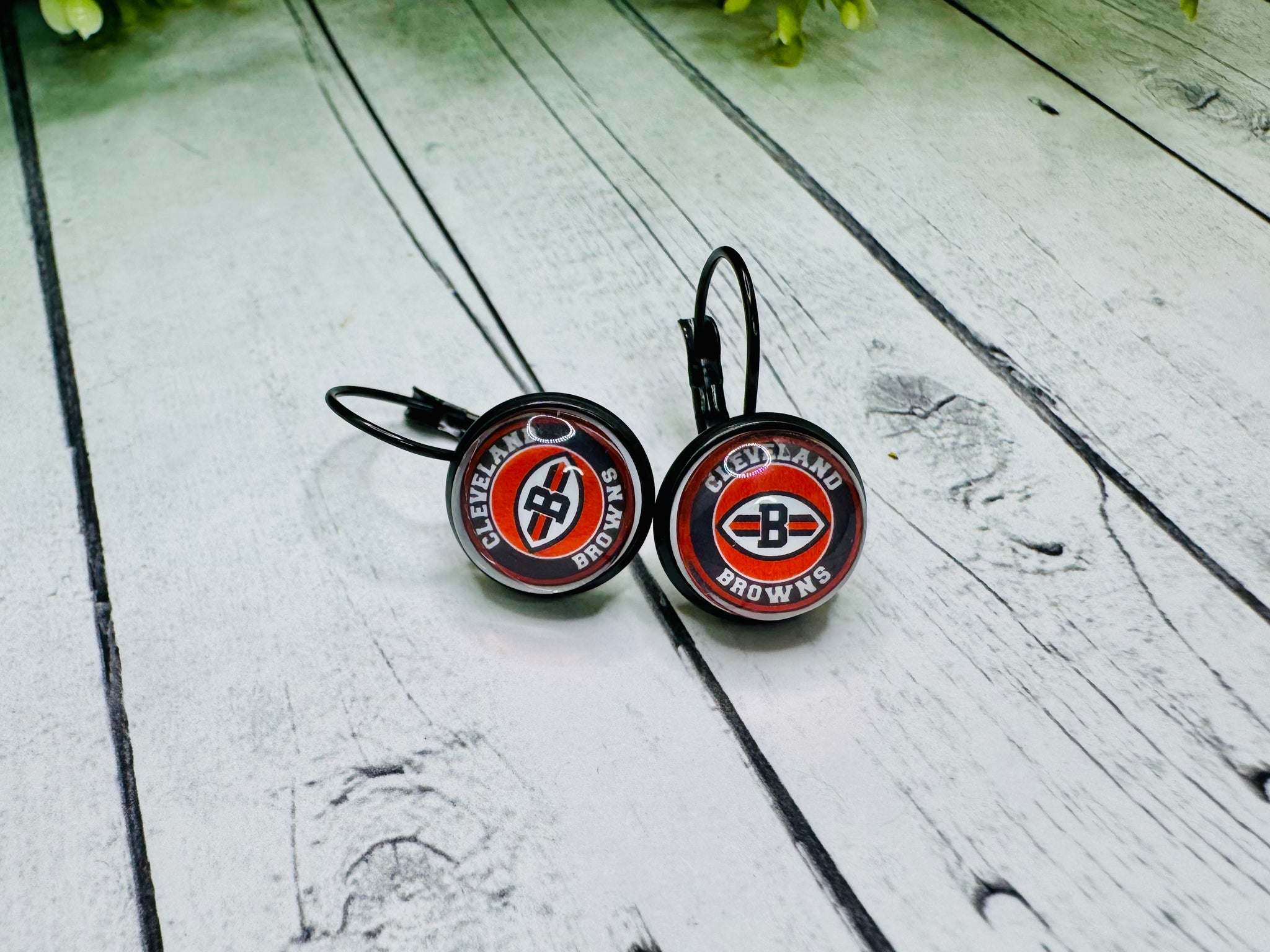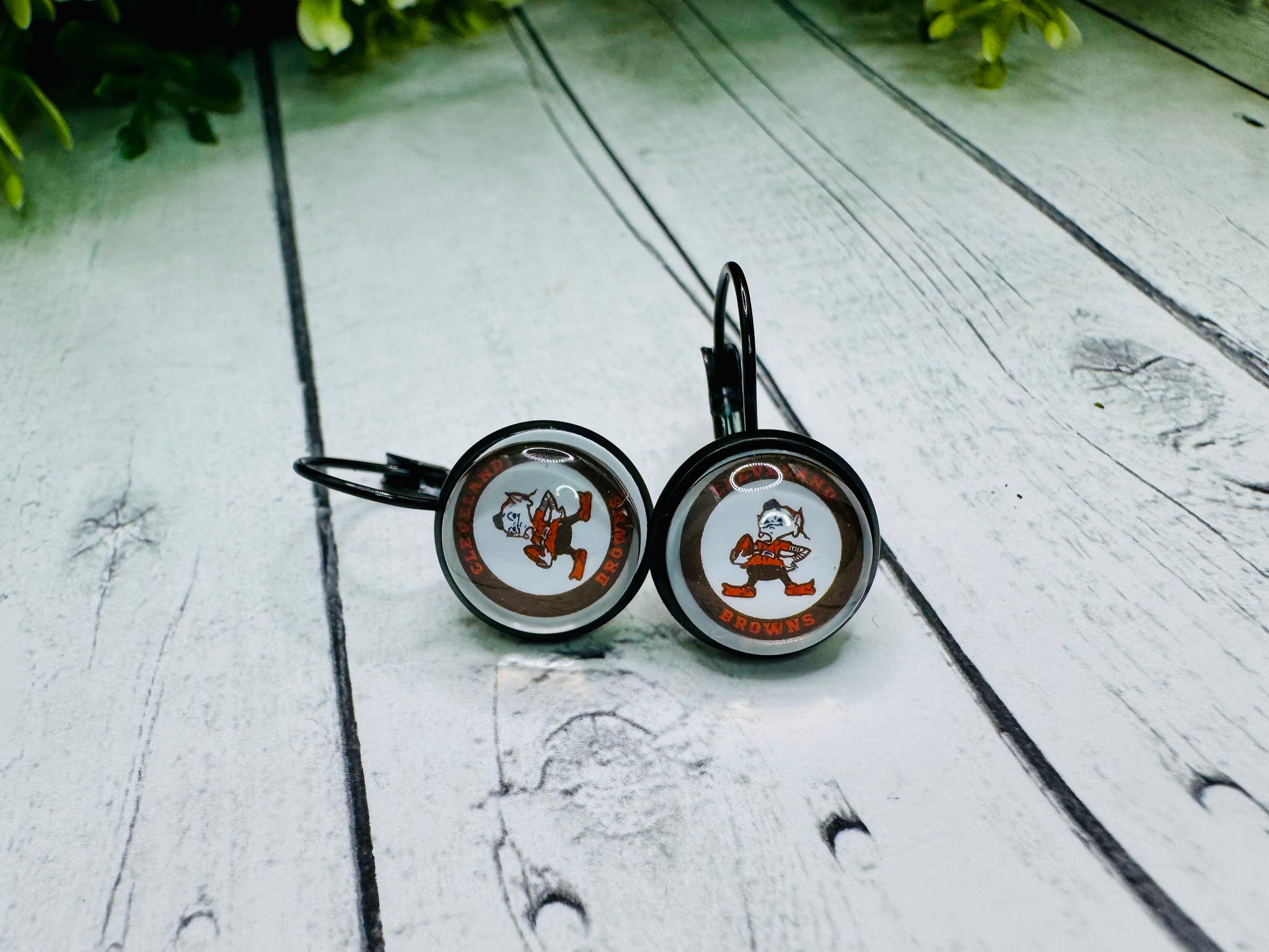 Cleveland Browns leverbacks. MadeĀ of black hypoallergenic stainless steel. Choice of Brownie mascot or Browns logo. Ask about other sports such as soccer, basketball, baseball, volleyball, etc.