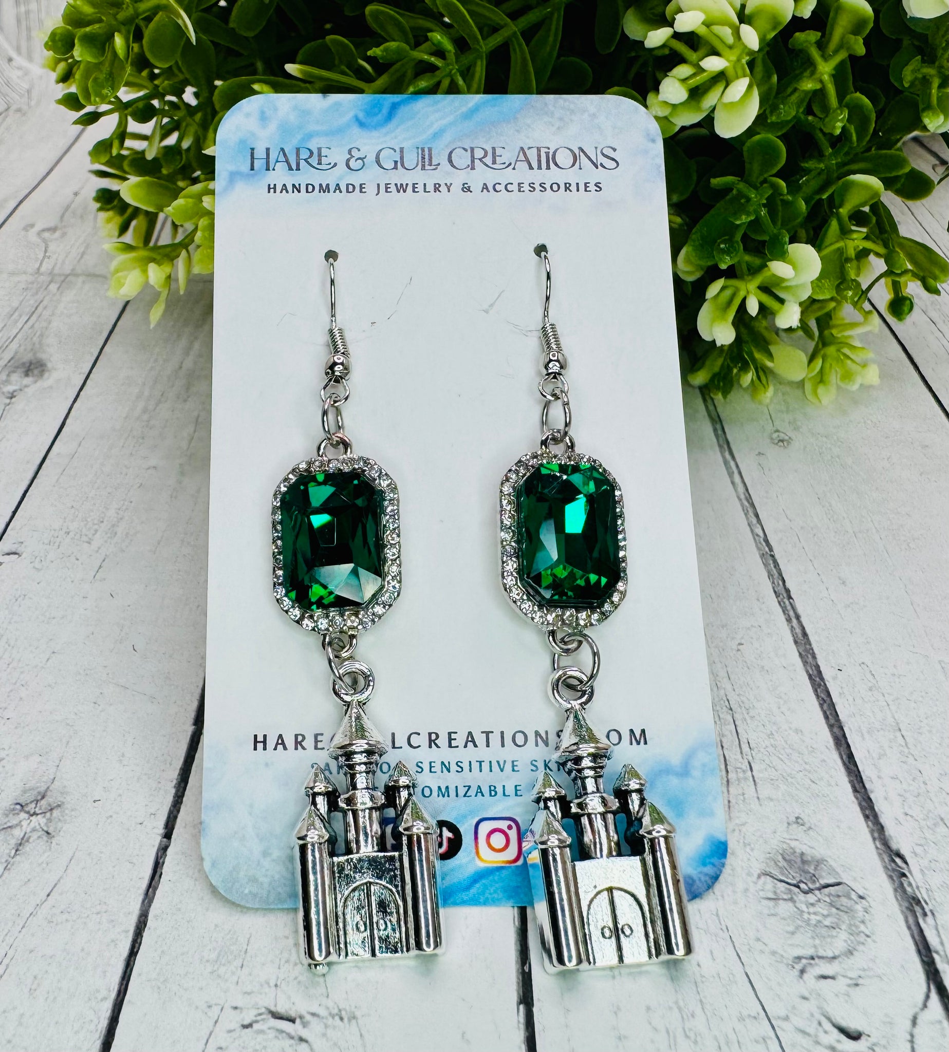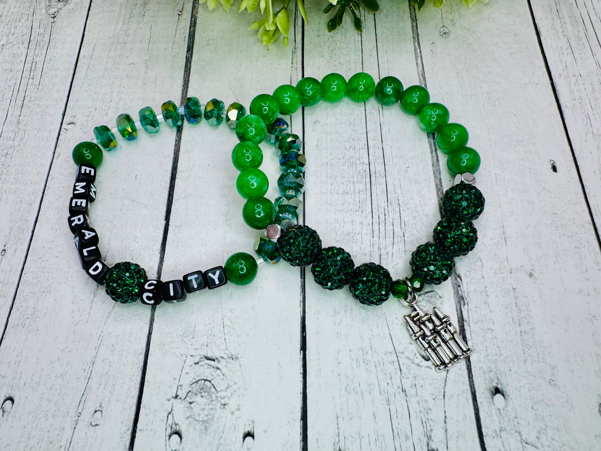 One of a kind "Emerald City” necklace, earrings and bracelet set (sold separately). Contains genuine stones and emerald city castle charms. You will get lots of compliments on this unique set.