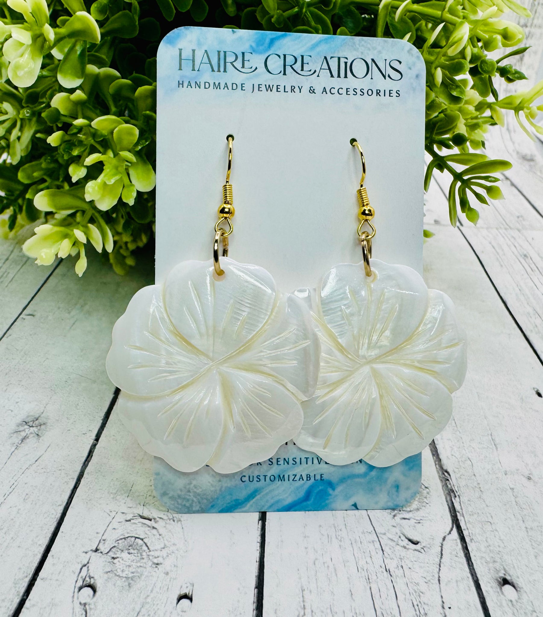 Genuine shell flower necklace and earrings set on a stainless steel 18kt gold plated chain. 16” with 2” extender