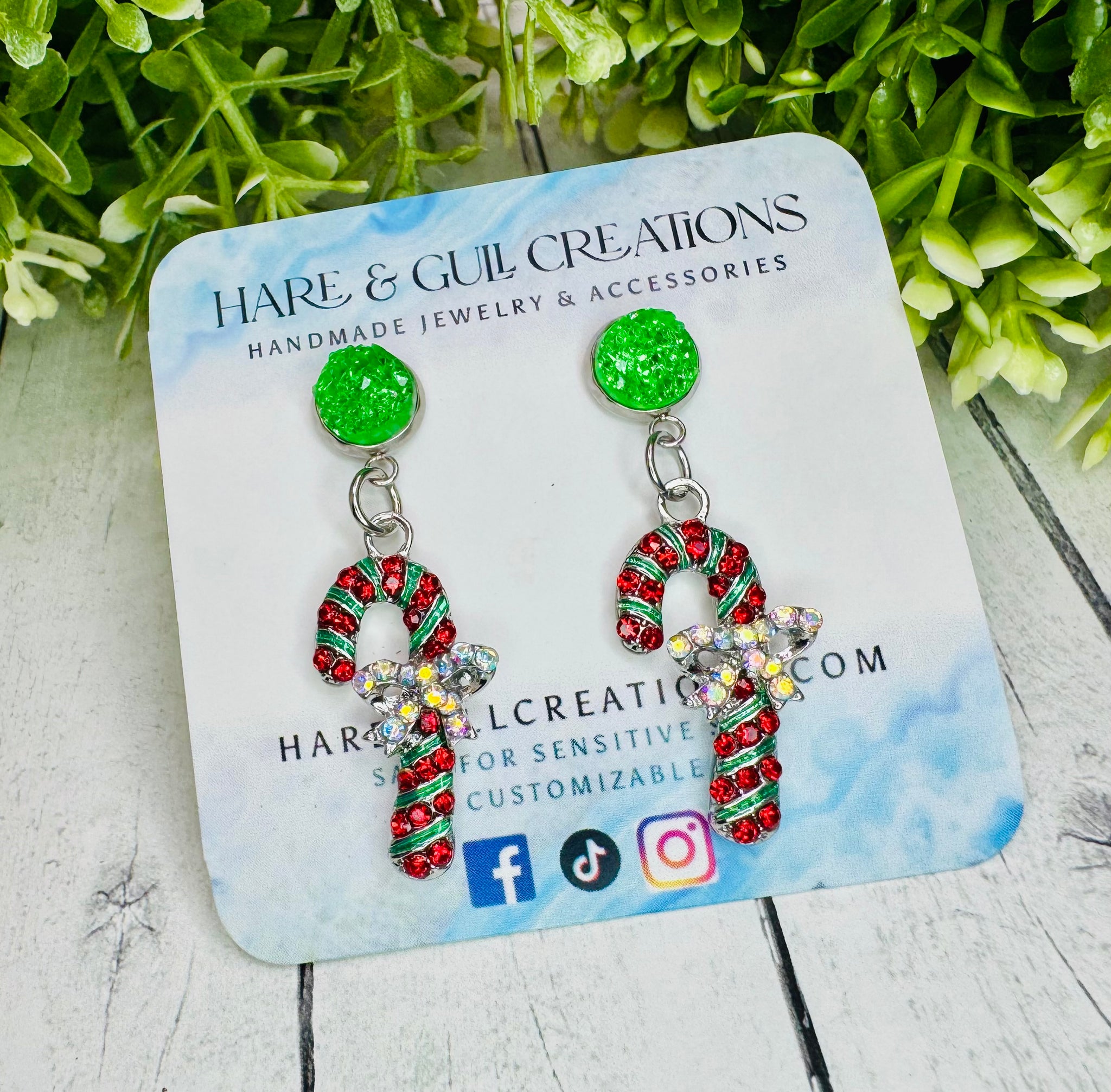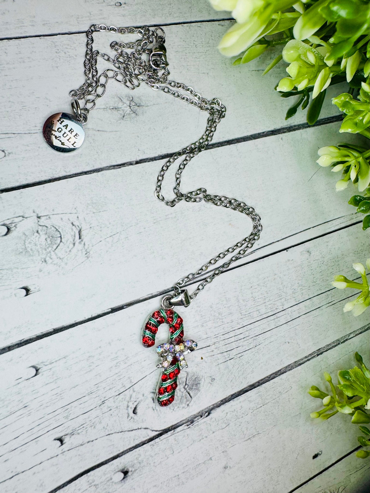 Designer inspired football bracelet, candy cane necklace & candy cane earrings with hooks